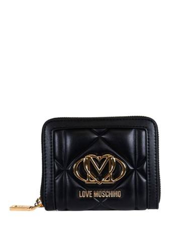 Love Moschino Shopper bag in pelle con logo frontale, manici lunghi e applicazione dorata. Chiusura con zip