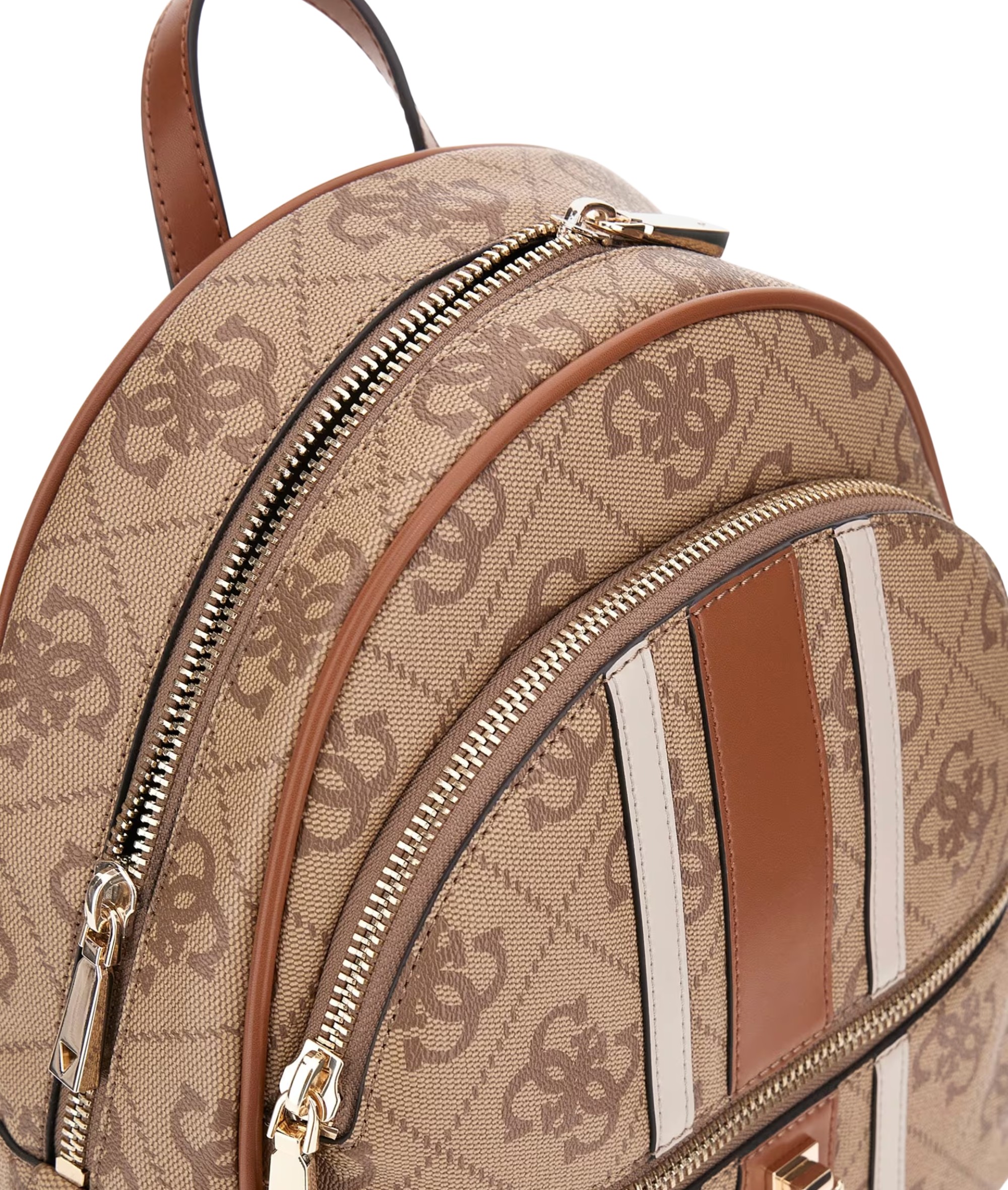 Maxi logo all over e strisce a contrasto con dettaglio logo in metallo.
