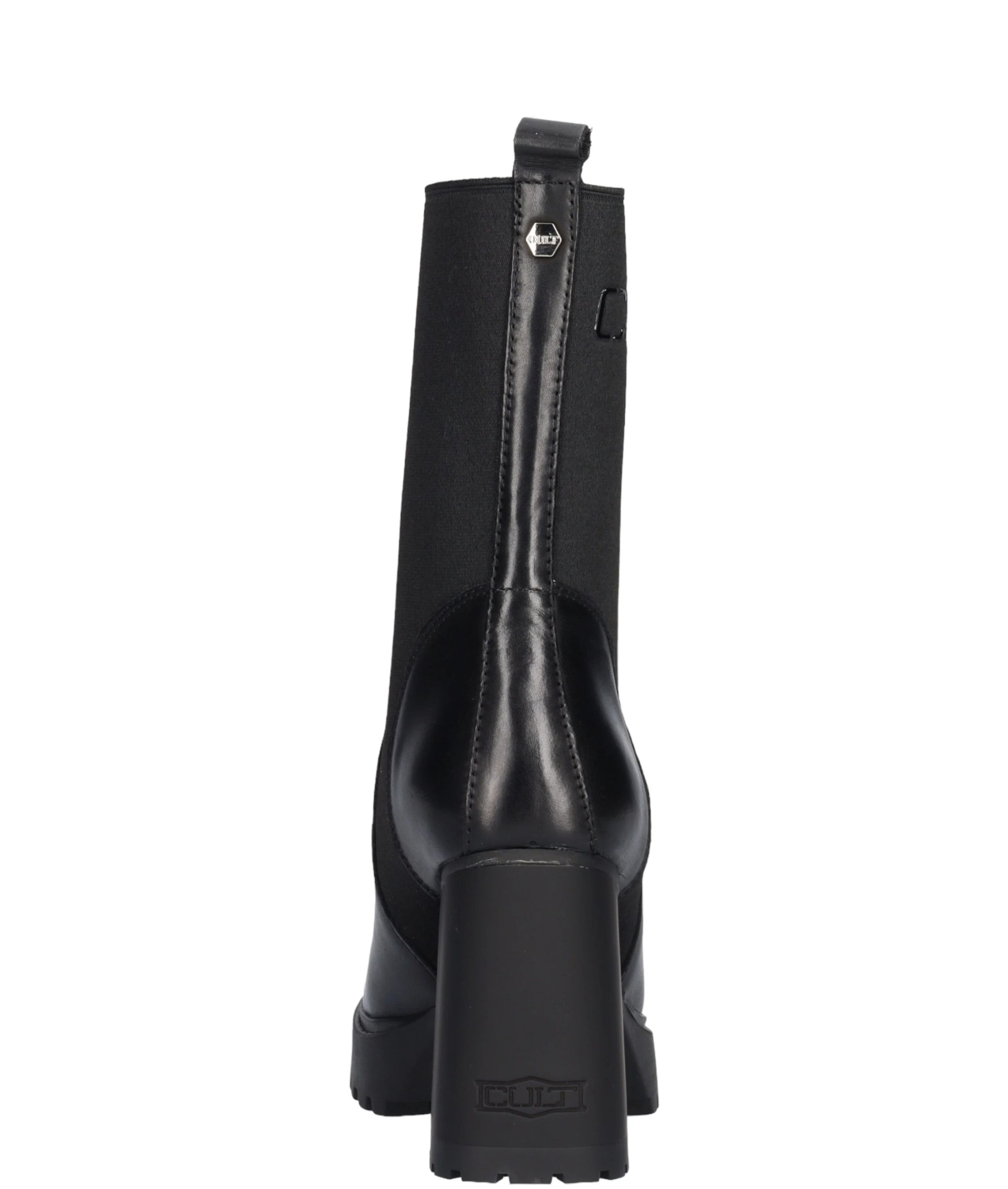 Tronchetto Cult con tacco doppio elastico laterale e scritta semilucida, tacco alto 9 cm