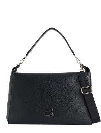 Sacca a spalla, con manico e tracolla staccabile, in nappa liscia, con maxi logo in gomma. Misure: 26x29x8cm