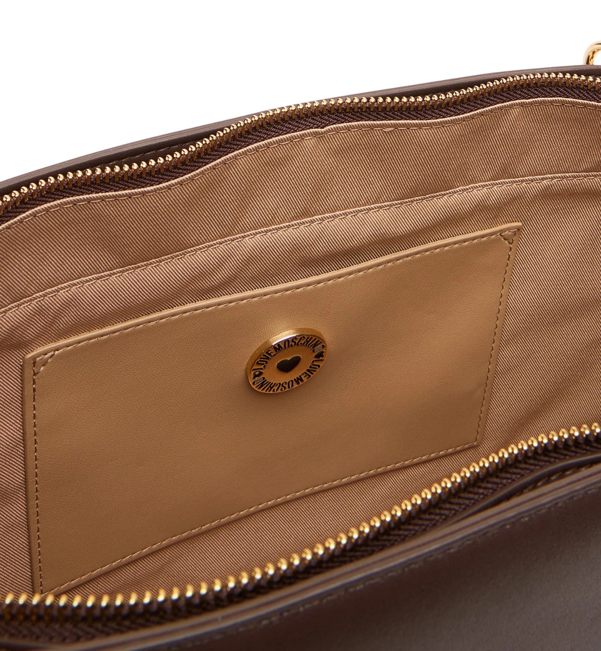 Doppio manico con dettagli legati in metallo, logo lettering sul davanti, chiusura con zip, tasche interne