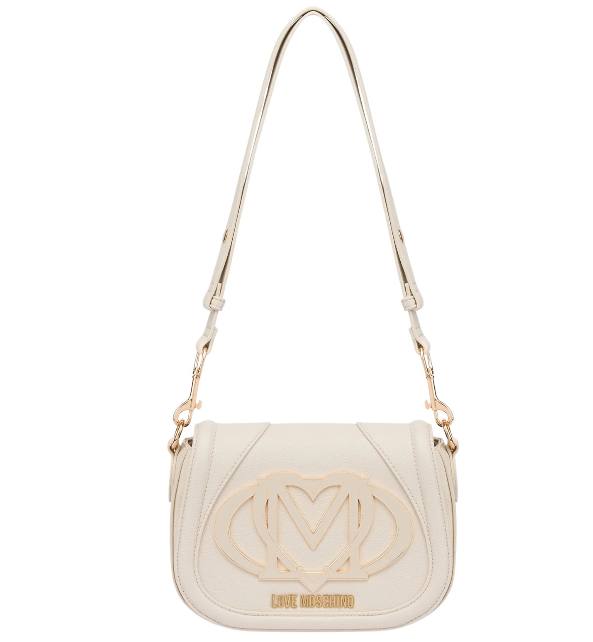 Borsetta con tracolla a spalla, maxi logo lm con cuore in metallo smaltato, logo lettering in galvanica oro, chiusura magnetica. Interno foderato con tasca con zip e tasca applicata