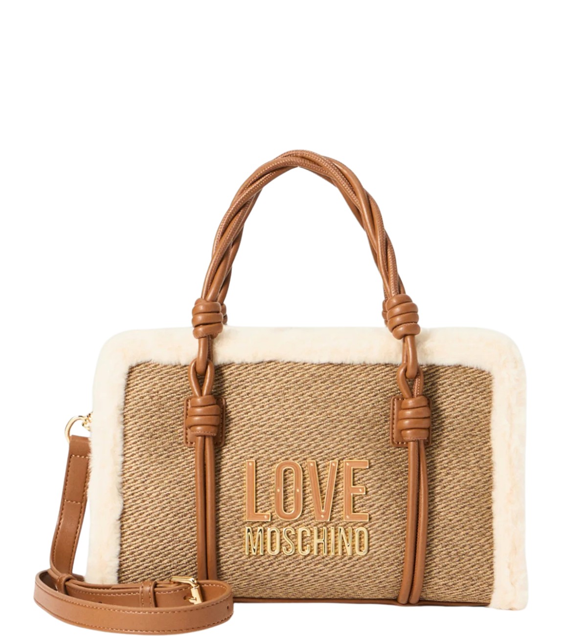 Love Moschino borsetta realizzata con pelliccia sintetica, pelle e intreccio, tracolla rimovibile e regolabile, logo LOVE MOSCHINO frontale