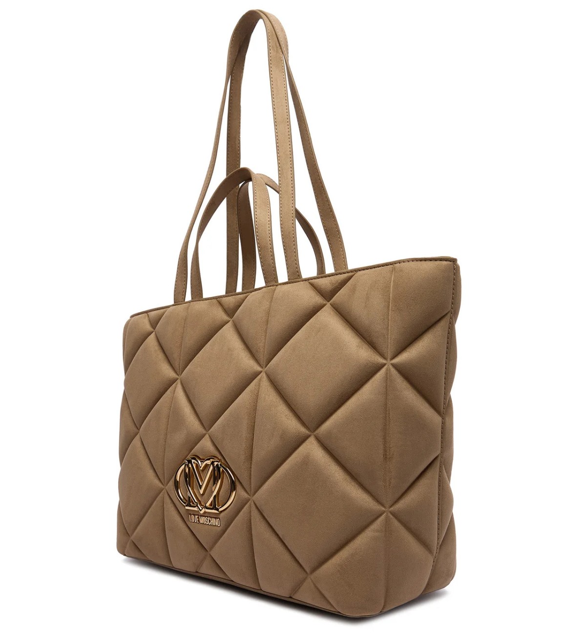 Love Moschino Shopper bag in velluto effetto scamosciato, logo frontale in galvanica oro, zip e tasche interne
