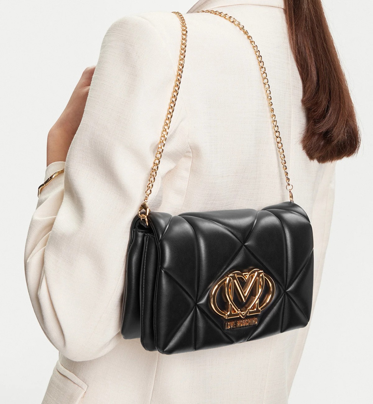 Love Moschino Borsetta in pelle effetto trapuntato con logo dorato LOVE MOSCHINO, tracolla in catena e pattina con clip magnetica