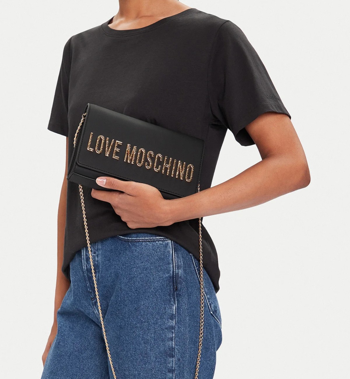 Love Moschino Borsetta in pelle con logo LOVE MOSCHINO dorato, catenella e chiusura con bottone magnetico, tasca interna