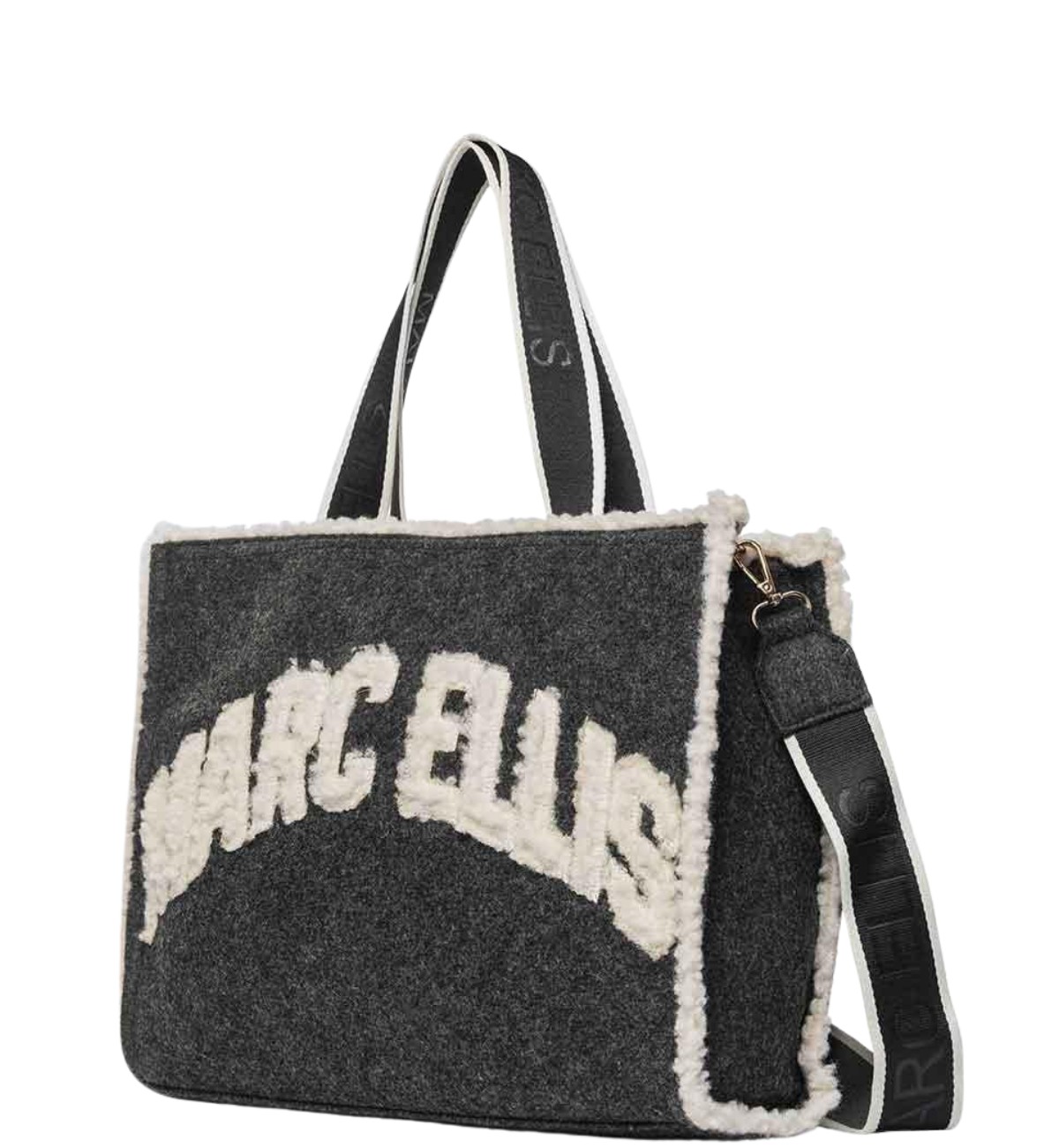 Marc Ellis Buby Cloth M borsa con scritta teddy, tracolla regolabile e manico lungo.
