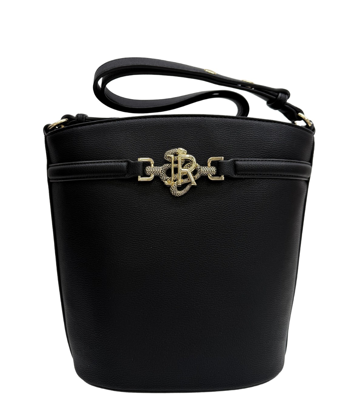 sulla parte frontale troviamo al centro il logo 'JR'' contornato da uno snake in metallo che riprende il logo del brand.