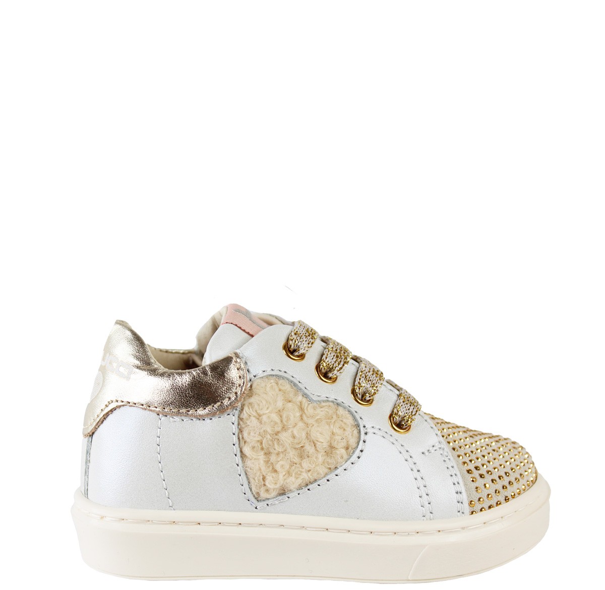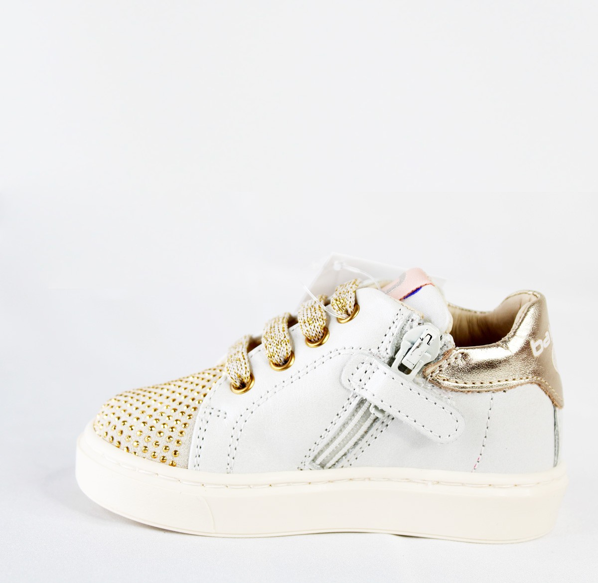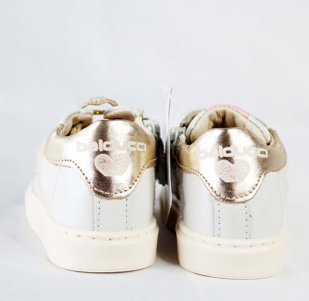 BALDUCCI Sneakers primi passi Bambina in pelle/pelle scamosciata. Fusbet in pelle con arcataplantare. Laccio brillantino oro, zip e strappo al lato. Cuoricino al lato con lanetta in rilievo e fondo in gomma