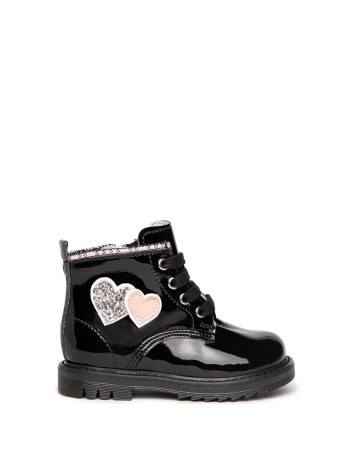 BALDUCCI Anfibietto primi passi Bambina in pelle nero con laccio particolare rosso (più laccio in cotone di ricambio), zip al lato con strappo, banda sul retro con cuoricino argentato e fondo in gomma. Suoletta con arcata plantare in pelle