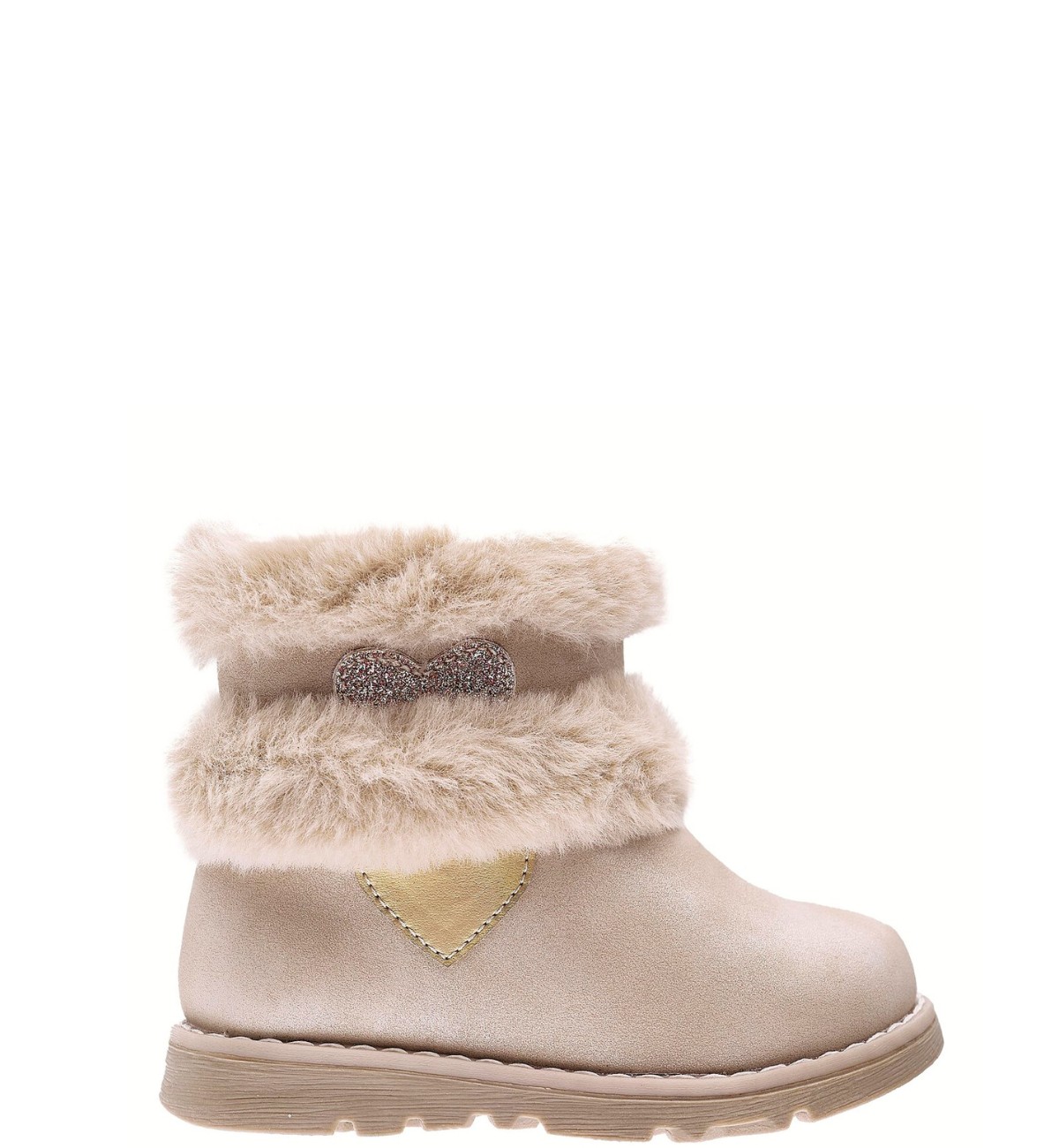 Stivaletto da bambina con bordo in tessuto effetto pelliccia e dettaglio laterale a forma di cuore. Regolabile con zip laterale forma arrotondata regolabile con zip laterale "Impronta Naturale Chicco" l'esclusivo sottopiede che asseconda il naturale sviluppo dell'arco plantare
