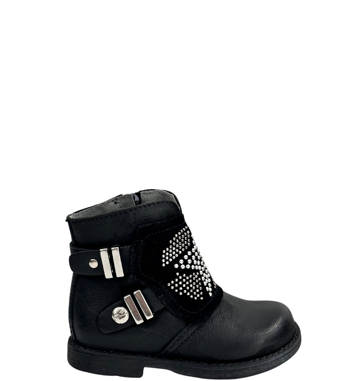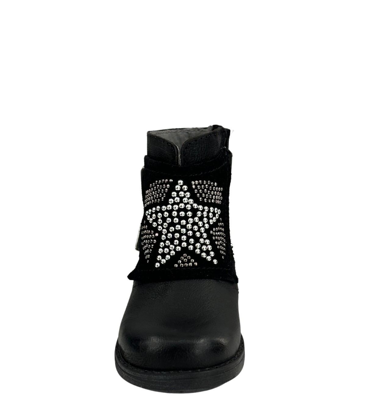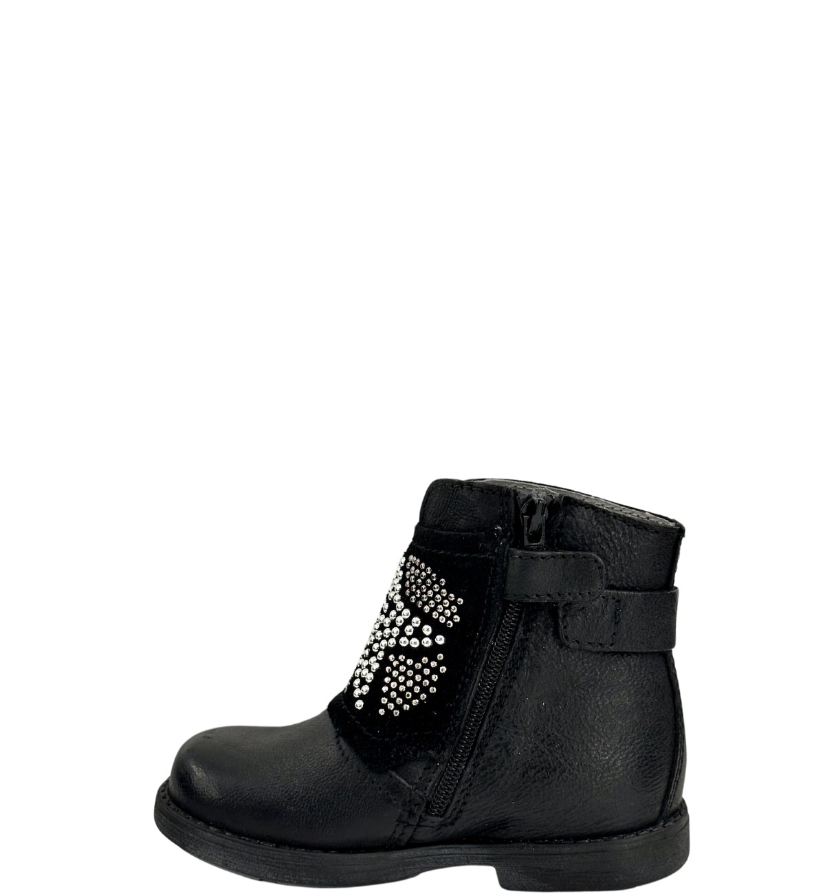 Stivaletto in pelle NeroGiardini da Bambina con stella con applicazione borchie, zip laterale e fondo in gomma.