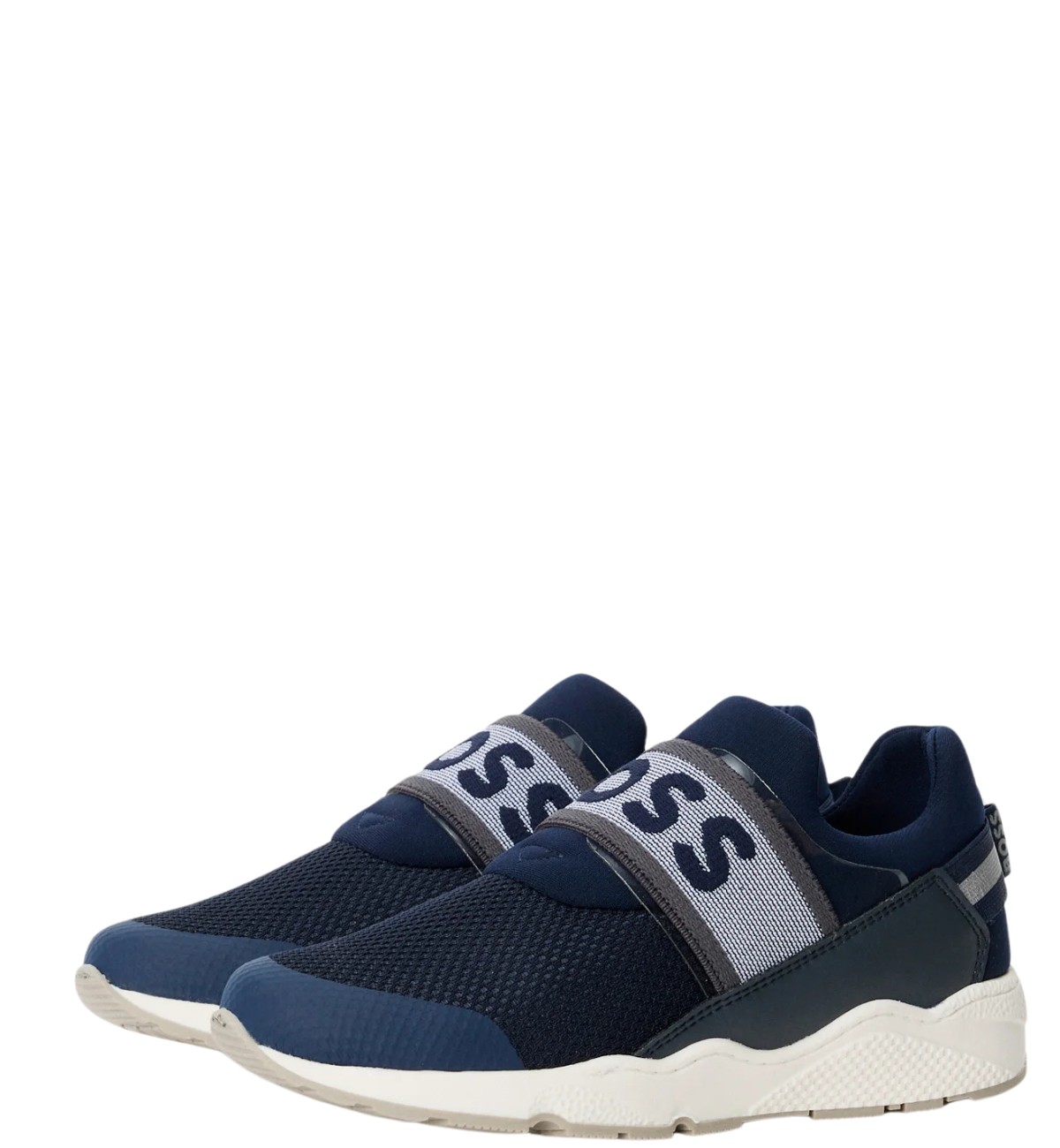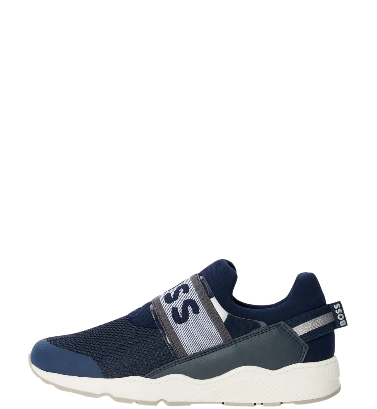Boss Sneakers blu in pelle e tessuto elastico molla, logo BOSS e fondo in gomma