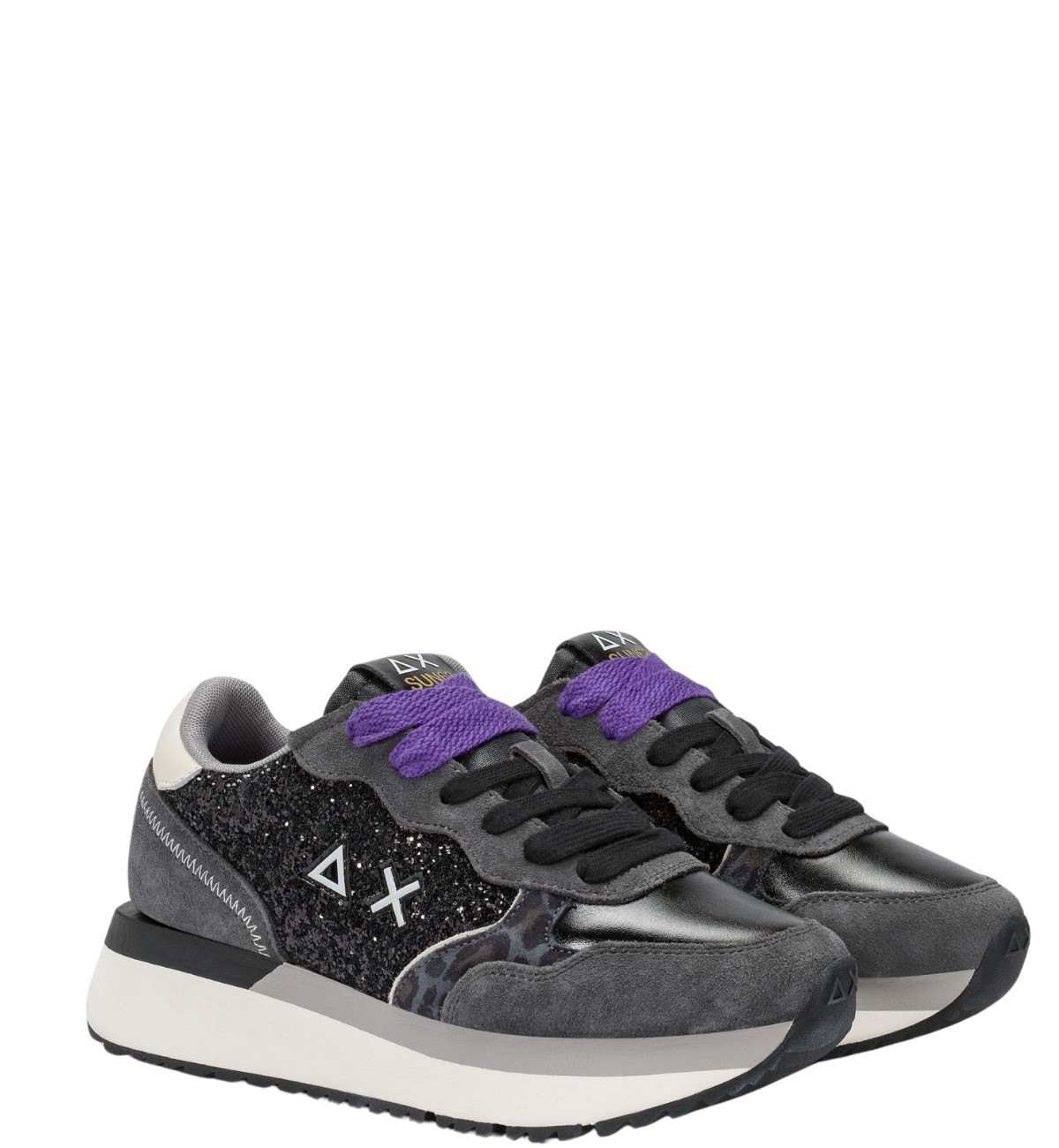 La sneaker Big Ally Glitter dall'attitudine casual chic con l'inserto sui lati tempestato di glitter luminosi. Impreziosita con dettagli logati SUN68 per una nota grintosa. La suola alta in gomma leggera sostiene i movimenti e slancia la silhouette.